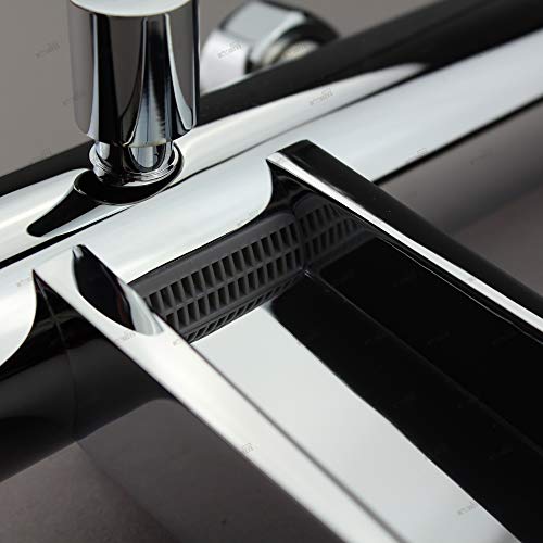 Unsere Wannenfüll-Armatur mit Wasserfallauslauf wird aus robustem Messing gefertigt und die Oberfläche ist glänzend verchromt. Der Griff, bestehend aus Metall, ist robust und leicht zu handhaben.