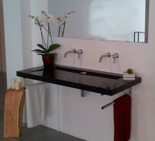 Waschbecken aus Granit. Sollten Sie Bohrungen für die Armaturen wünschen, schreiben Sie uns an. Wir bohren diese mit 35mm
