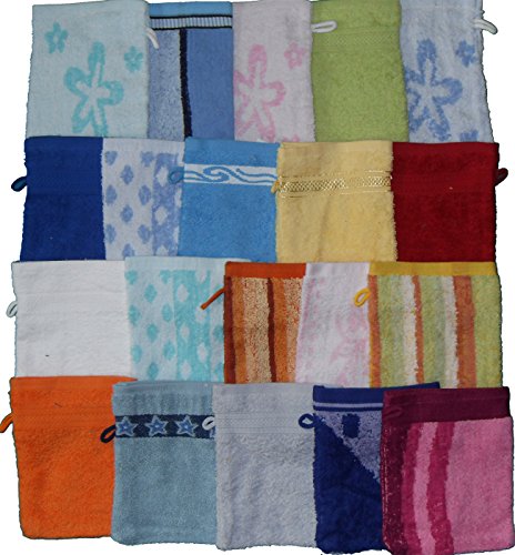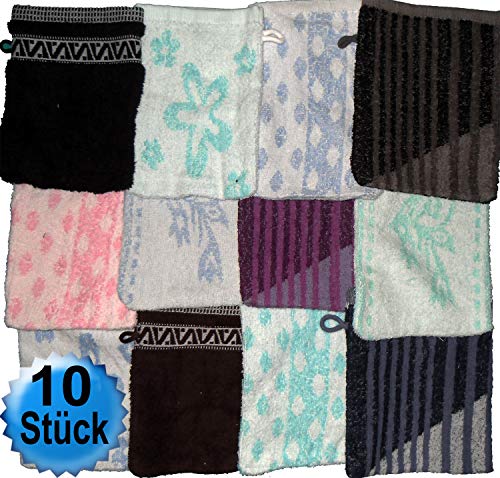 KH-Haushaltshandel Waschhandschuh Frottee, 10 Stück in versch. Farben Sortiert, ca. 14x21cm, 100% Baumwolle, Uni…
