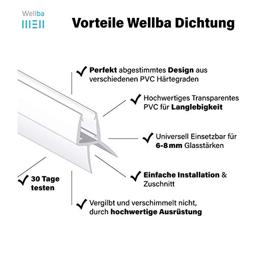 Wellba Premium Duschtür Dichtung (2x cm) für 6mm 7mm 8mm Glastür Stärken | Wasserabweisende Duschdichtung oder… günstig online kaufen