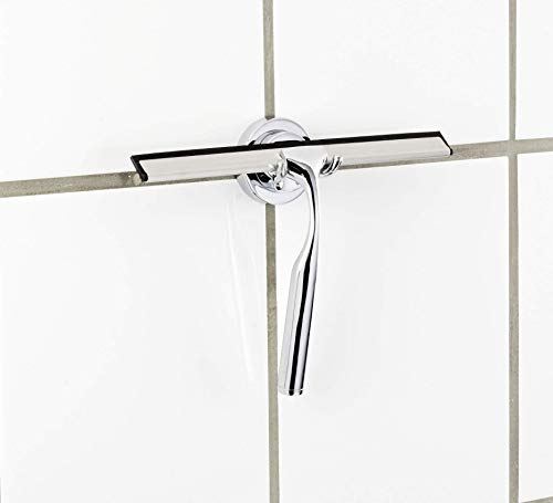 Mit dem hochwertigen Badezimmerwischer Terni in schwerer Chromqualität werden durch streifenfreies Abziehen der Dusch- und Badwände Kalkflecken vermieden. Er eignet sich auch ideal zum Wischen anderer glatter Flächen, zum Beispiel der von Spiegeln und Wandfliesen im Badezimmer. Mit der praktischen Halterung kann der Wischer an Wand- oder Duschkabine befestigt werden und ist für den sofortigen Einsatz stets griffbereit. Im Lieferumfang ist eine Ersatzlippe enthalten.
