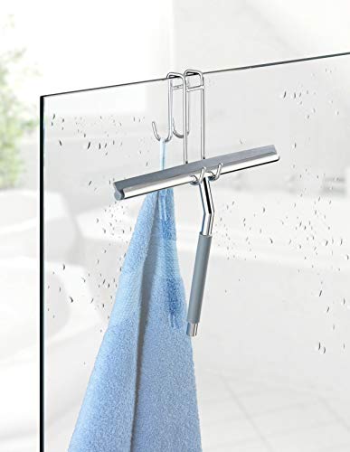 WENKO Badezimmerwischer Cave – Duschabzieher, mit Hängevorrichtung, Edelstahl rostfrei, 21.5 x 26 cm, Glänzend