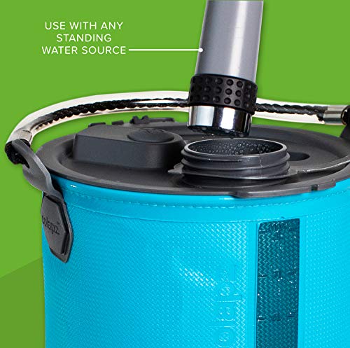 ACHTUNG: Der Eimer ist nicht mit inbegriffen. Er dient nur der Veranschaulichung, aber schauen Sie sich bitte auch unsere faltbaren Eimer an, die perfekt für diese tragbare Dusche geeignet sind.