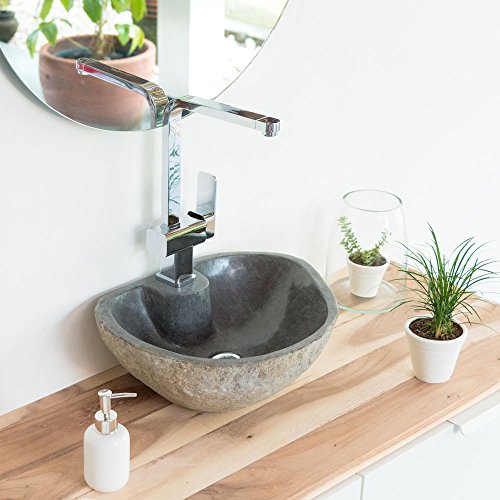 Das Waschbecken ist innen poliert und außen in der natürlichen Form des Steines naturbelassen. Für die Armatur gibt es einen Aufsatz. Jeder Flußstein hat über Jahrtausende einen langen Weg durch die Tropenflüße Indonesiens bis in Ihr Zuhause zurückgelegt.
